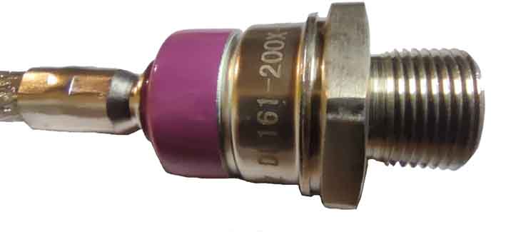 Диод типа ДЛ161-200Х используется чтобы преобразовать переменное напряжение в постоянное, пропуская через себя ток в одном направлении. Максимально допустимый средний прямой ток составляет 200А. Повторяющееся обратное напряжение 1600В. Полупроводниковый выпрямитель обладает высокой надежностью и долгим сроком службы. Диод может работать в интервале температур от -70 до 125 градусов. Масса диода ДЛ161 составляет 300г. Для рассеивания тепла при работе диода используются охладители (радиаторы) марок: О171, О271, О371, О471, ОМ101. Катодом является медное основание, анодом – гибкий вывод.