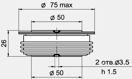 Диод марки Д253-1600 используется чтобы преобразовать переменное напряжение в постоянное, пропуская через себя ток в одном направлении. Максимально допустимый средний прямой ток составляет 1600А. Повторяющееся обратное напряжение 2200В. Полупроводниковый выпрямитель обладает высокой надежностью и долгим сроком службы. Диод может работать в интервале температур от -70 до 125 градусов. Масса диода Д253 составляет 600г. Для рассеивания тепла при работе диода используются охладители (радиаторы) марок: О242, О153, О253, О353.