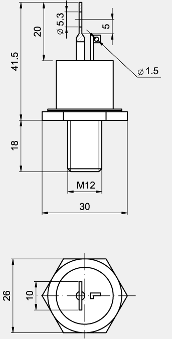 Тиристор Т152-63 представляет собой полупроводник, состоящий из четырех слоев. При подаче аналогового или импульсного сигнала на определенный слой (управляющий электрод), полупроводник из закрытого состояния переходит в открытое и наоборот, следовательно тиристор можно назвать управляемым диодом. Средний ток в открытом состоянии 63А. Повторяющееся обратное напряжение 1300В. Масса тиристора Т152 составляет 78г. Для отвода тепла от тиристора может использоваться охладитель (радиатор) марки О151.